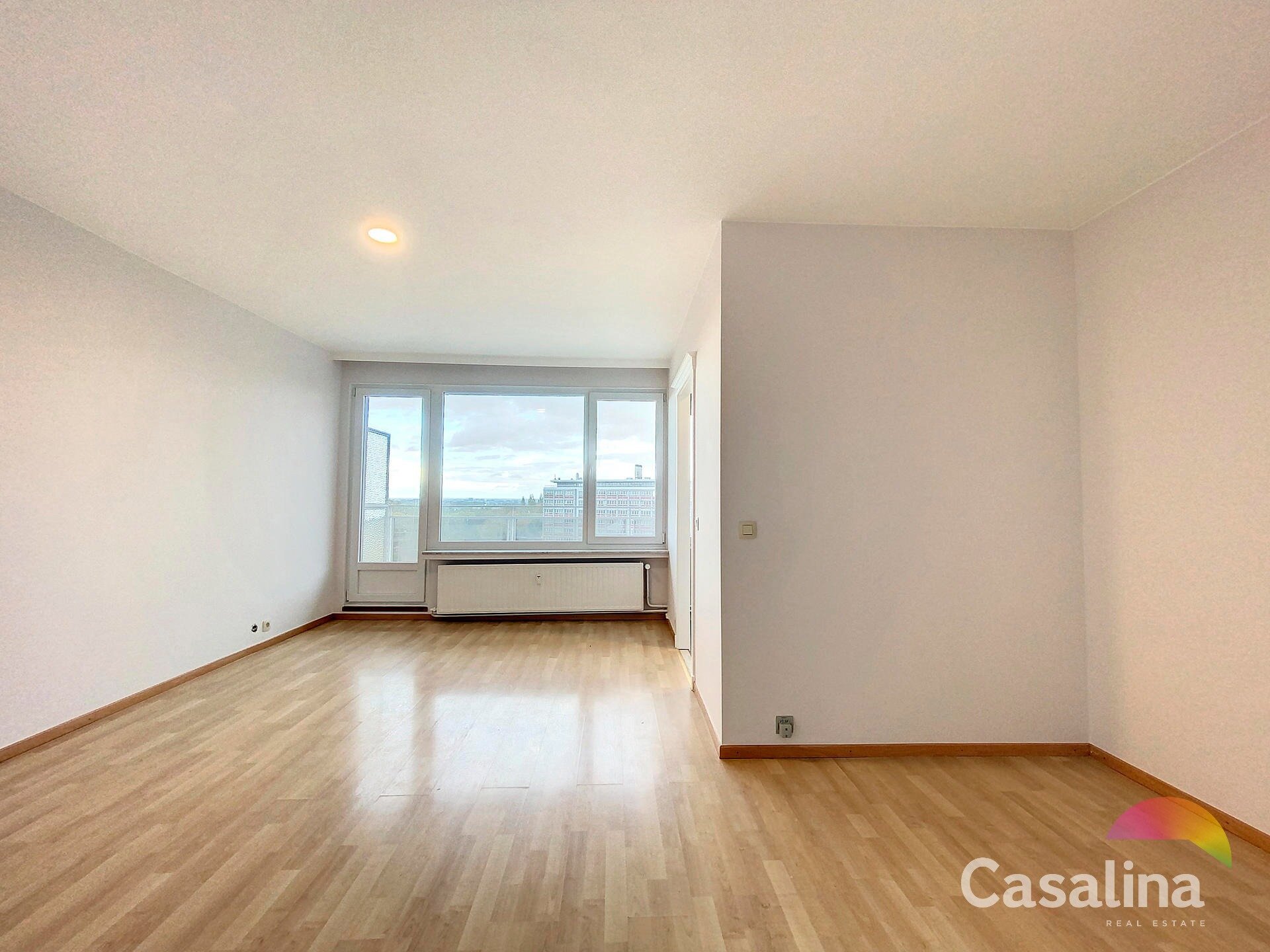 CASALINA Real Estate stelt te huur – lichtrijke studio van ±36 m² met terras, gelegen op de 8e verdieping en genietend van een prachtig panoramisch zicht.